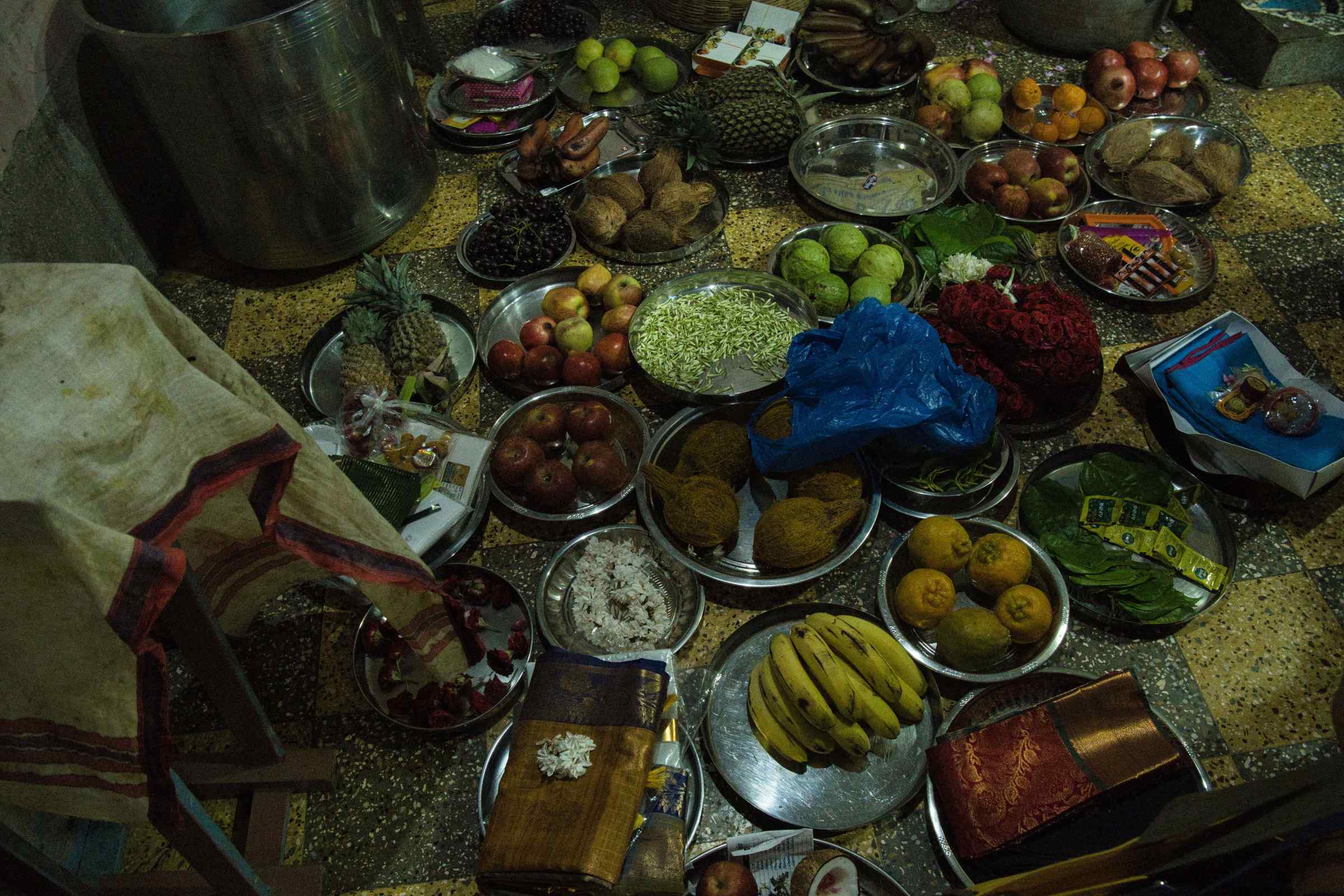 Alle bringen Geschenke (zumeist Früchte oder Gebäck) mit, es gibt eine Miniband (Sitarsound vom Band?, einen Flötenspieler und einen Percussionisten und es gibt mehrere Zeremonienmeister.