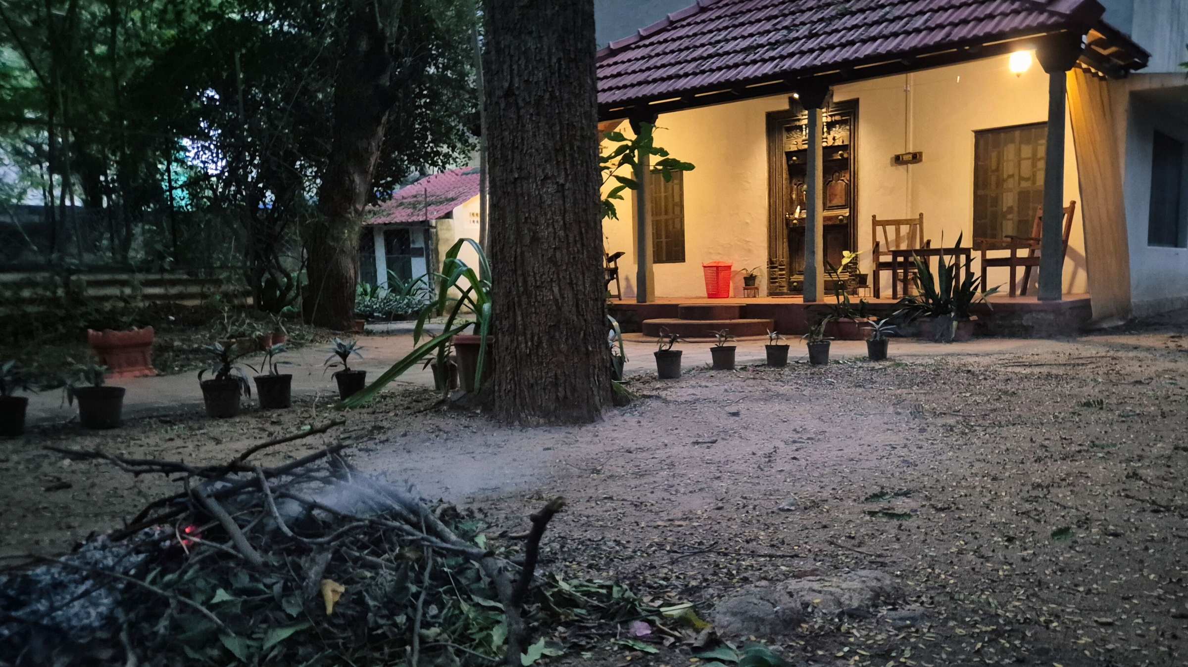 Gut, dass ich mir in Anbetracht der heraufziehenden Erschöpfung eine Unterkunft mit Erholungspotential gemietet habe. Aber erst, nachdem Tara, meine junge, dynamische Vermieterin, die hier stolz und mit viel Einsatz das Anwesen ihres Großvaters pflegt, mir sowohl ein ayurvedisches Hustenlösungsmittel und auch ein gutes Mückenspray empfohlen und darüber hinaus den Gärtner gebeten hat, zusätzlich ein glimmendes Feuer vor meinem Bungalow anzulegen, um die Mücken von meiner Terrasse fern zu halten, komme ich heute – am zweiten Tag – tatsächlich in den Genuss, auf der wunderschönen Veranda meine Füße hoch zu legen und der Affenhorde beim Toben auf den Bäumen und Mauern zu zu schauen.
