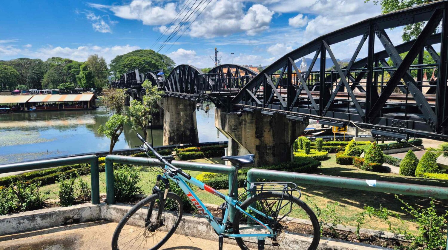Ich schaue mir das bunte Treiben an der Brücke am Kwai an,
