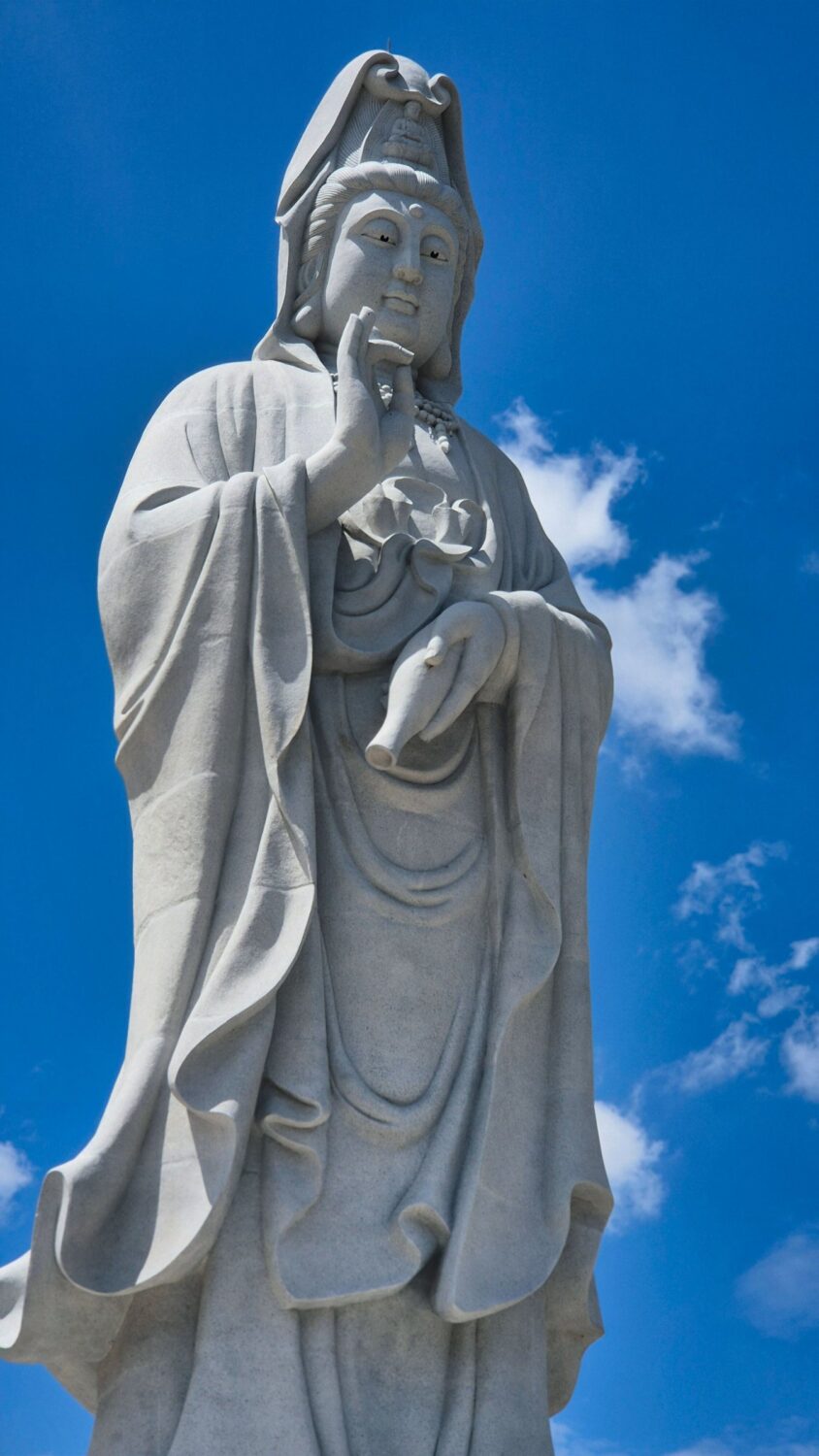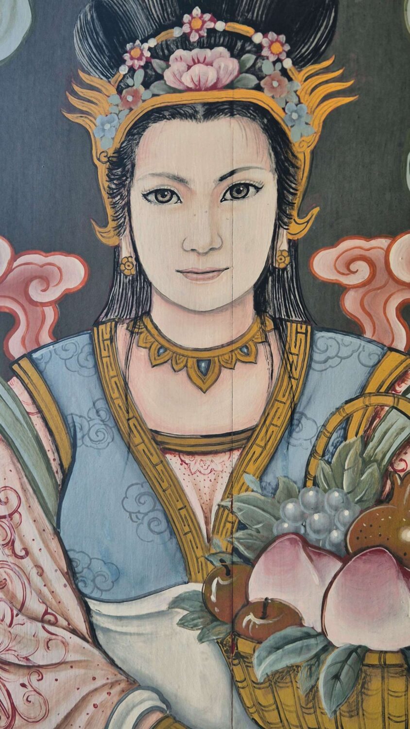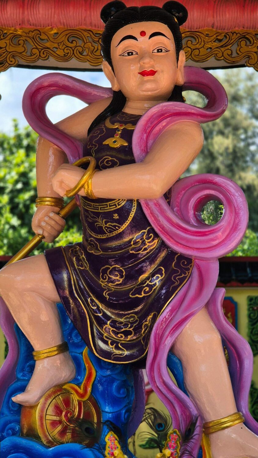 folge dem Zug über die Brücke und besuche dann das wihan phra phothisat kuan im, einen eindrucksvollen chinesischen Tempel, der auf der anderen Seite der Brücke liegt, besucht.