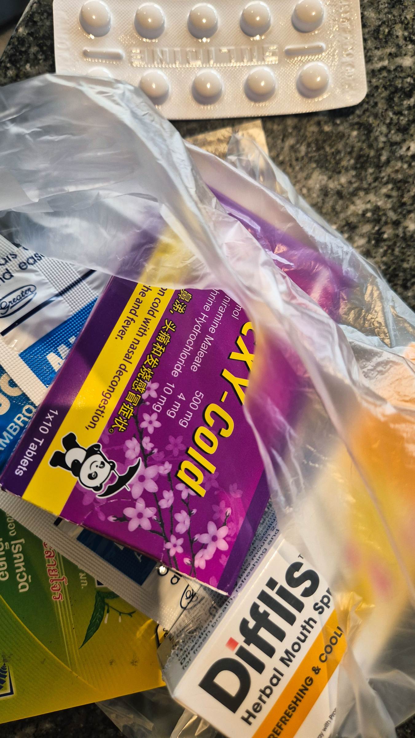 Eine unheimlich nette Pharmazeutin versorgt mich mit Medikamenten, die mein Fieber, die Halsschmerzen, die Entzündung der Stimmbäder und den Husten lindern sollen.