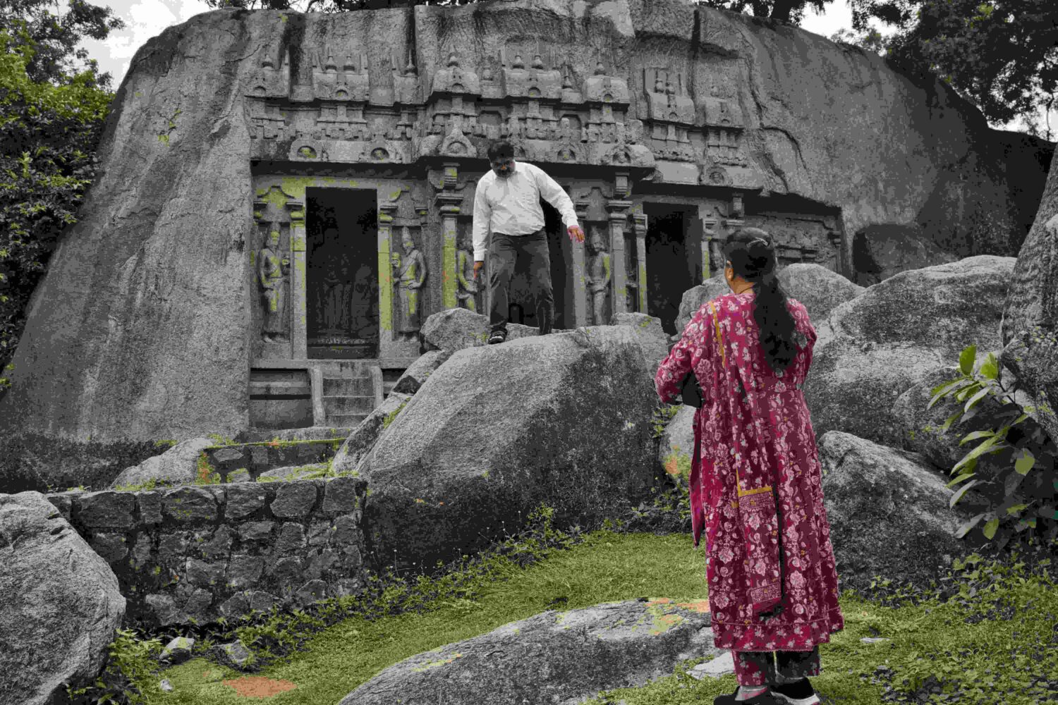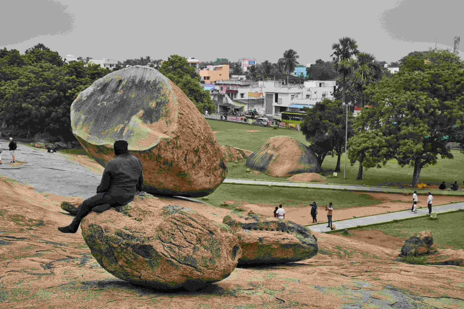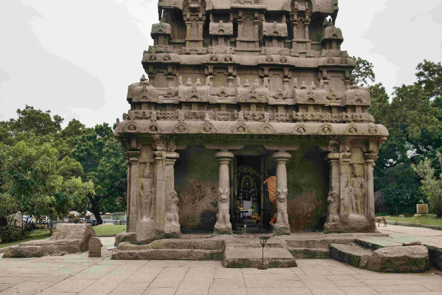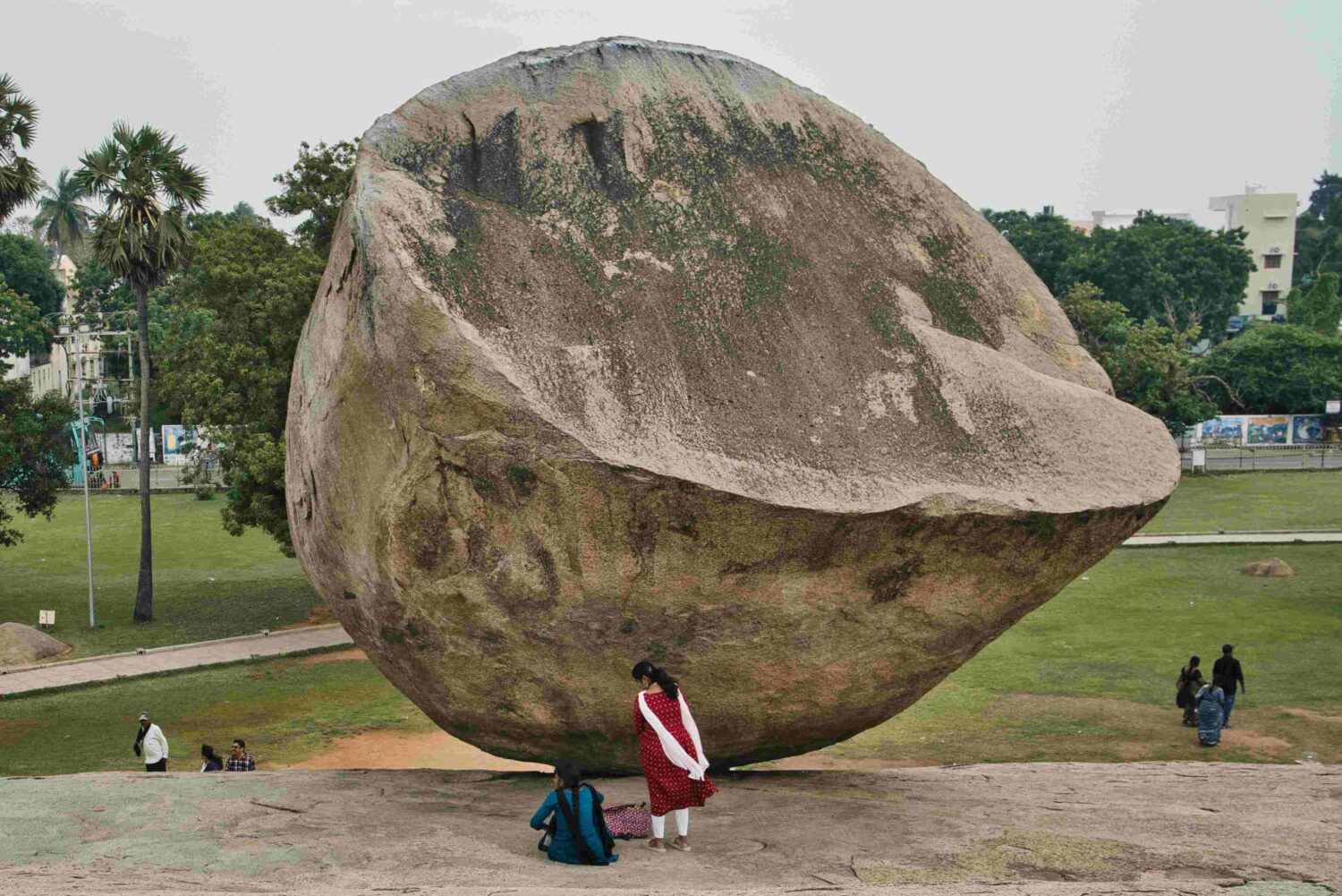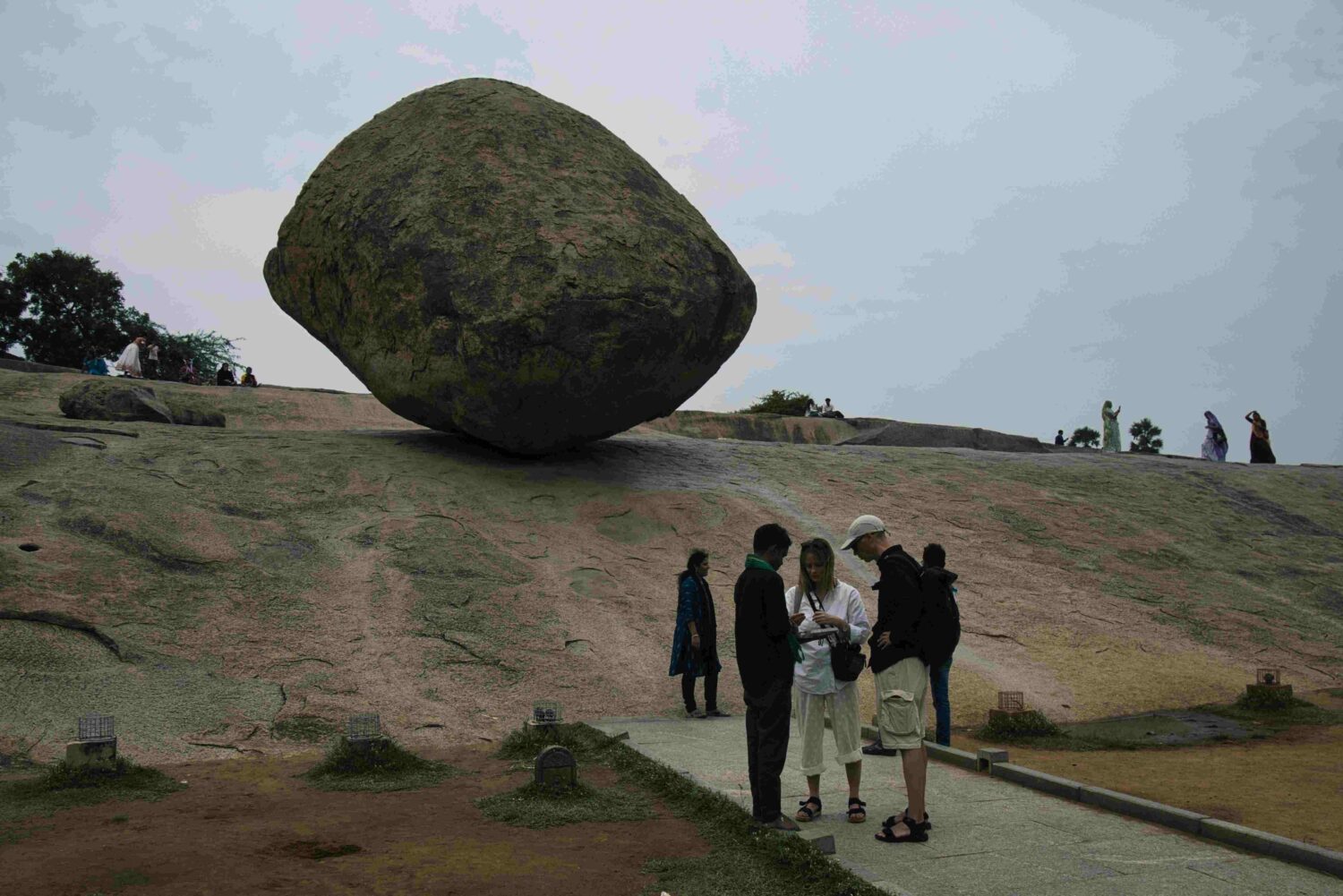 Im Historical Park besuche ich unter anderem Krishna’s Butterball, einen mehr als 500 Tonnen schweren Granitfelsen, der trotz seiner rundlichen Form und obwohl die Auflagefläche an dem abschüssigen Granitterrain nur winzig klein ist, stabil und zum Staunen der BesucherInnen seine Lage hält. Ich habe 2011 schon mit Ulla dieses Phänomen bewundert.