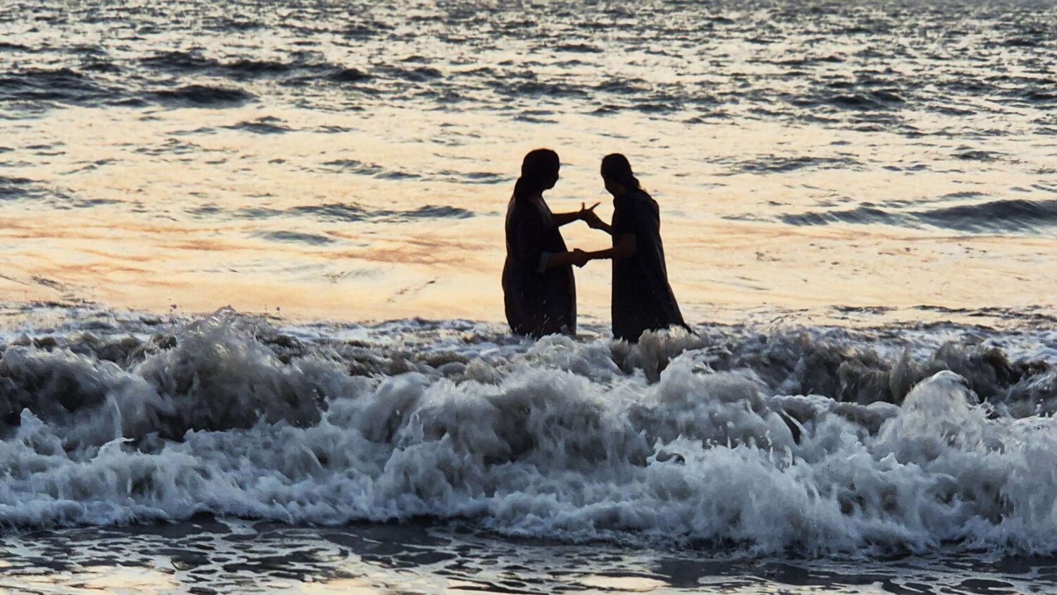 Könnte ich unendlich weit sehen, sähe ich am Strand von Valapad stehend in weiter Entfernung geradeaus auf Afrika, drehte ich meinen Kopf ein wenig nach links wären sehr viel näher die Malediven und nach einer Kopfdrehung nach rechts Jemen und der Oman zu sehen – naja ungefähr vielleicht. Es ist Mittwoch, der 24. Dezember 2025, die Stimmung bei Sonnenuntergang am Arabischen Meer ist wunderschön. Es sind einige wenige Strandbesucher hier – ich bin weit und breit der einzige Hellhäutige.