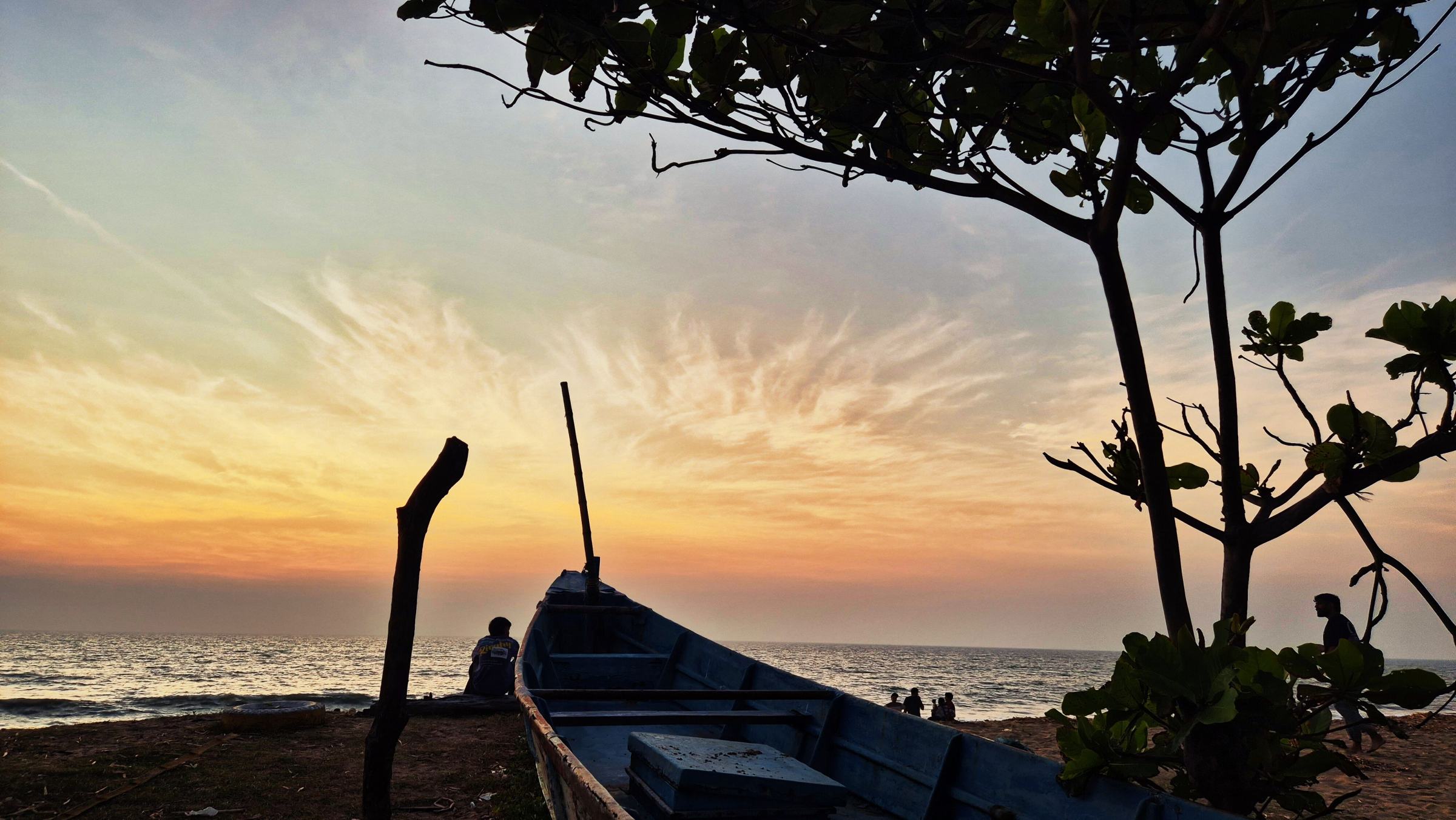Könnte ich unendlich weit sehen, sähe ich am Strand von Valapad stehend in weiter Entfernung geradeaus auf Afrika, drehte ich meinen Kopf ein wenig nach links wären sehr viel näher die Malediven und nach einer Kopfdrehung nach rechts Jemen und der Oman zu sehen – naja ungefähr vielleicht. Es ist Mittwoch, der 24. Dezember 2025, die Stimmung bei Sonnenuntergang am Arabischen Meer ist wunderschön. Es sind einige wenige Strandbesucher hier – ich bin weit und breit der einzige Hellhäutige.