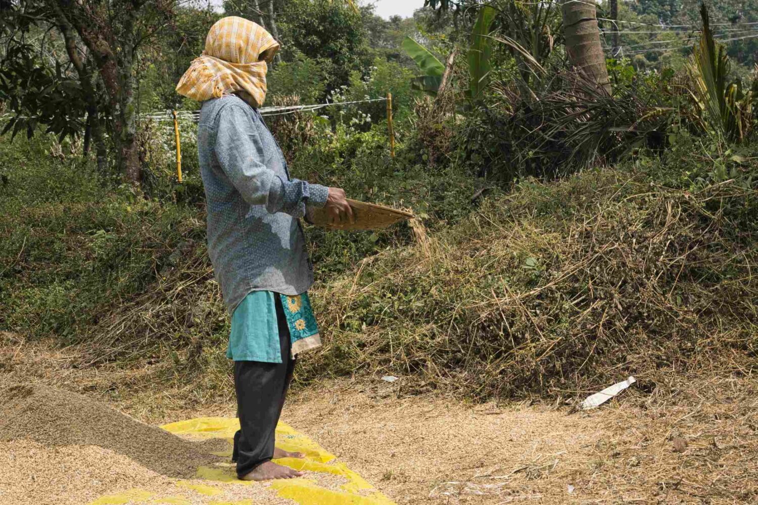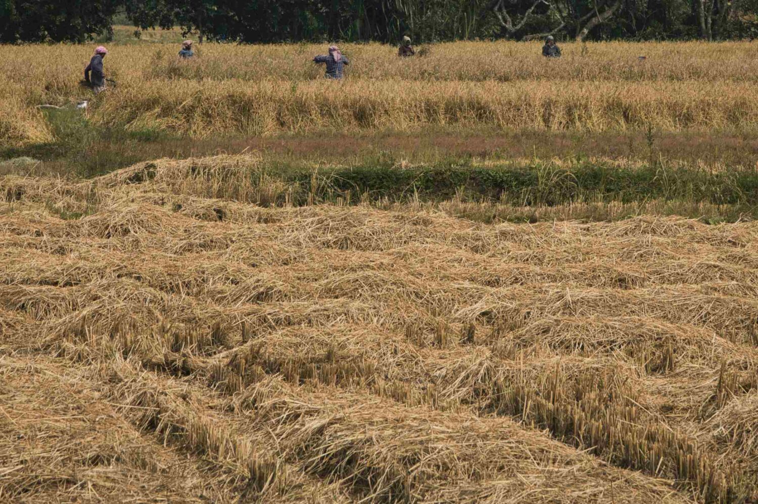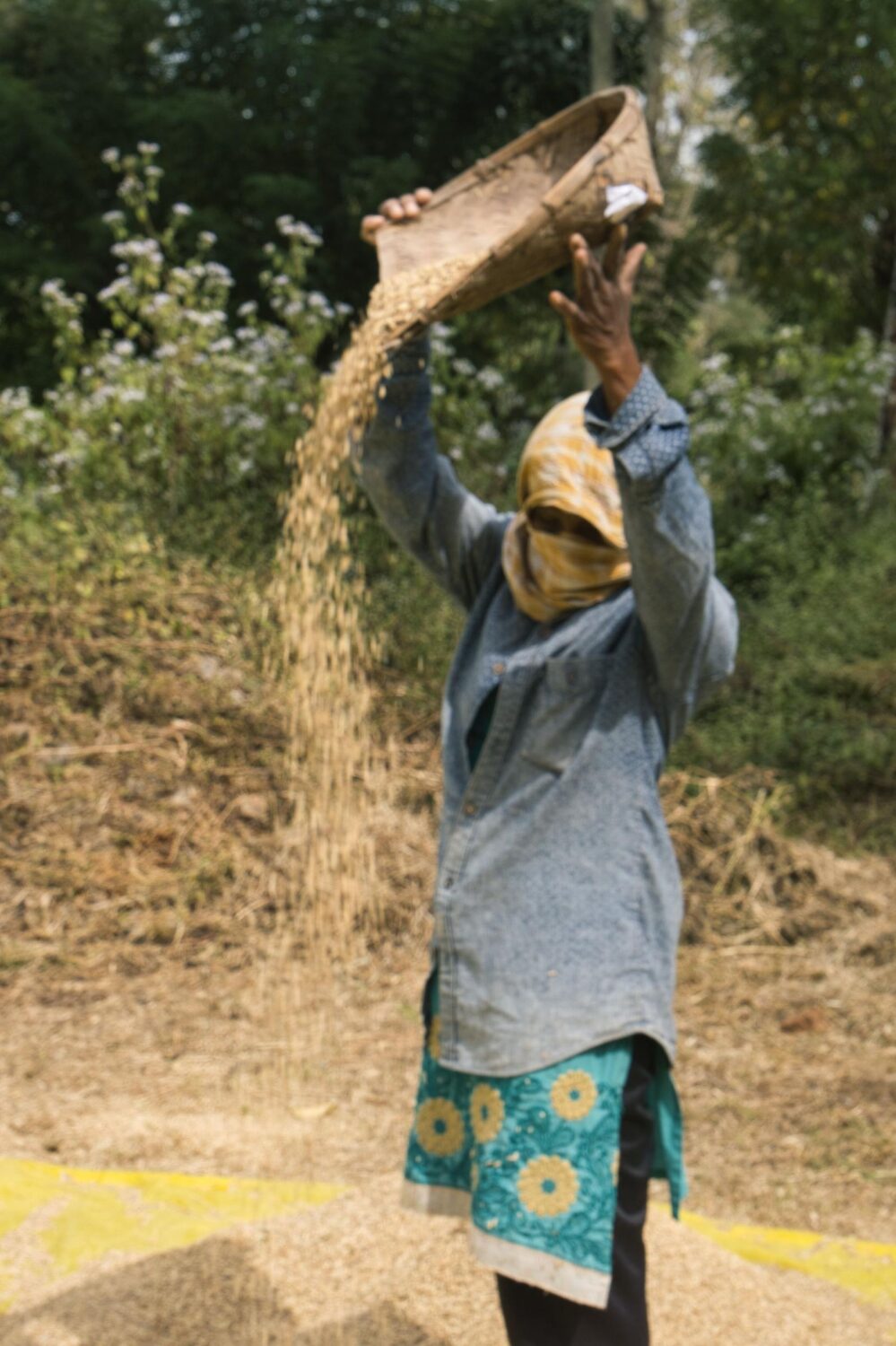 Unterwegs wird der Reis auf traditionelle Art und Weise (in mühevoller Handarbeit) geerntet, an anderer Stelle die Spreu vom Reis getrennt und ein Stückchen weiter Brennholz nach Hause getragen