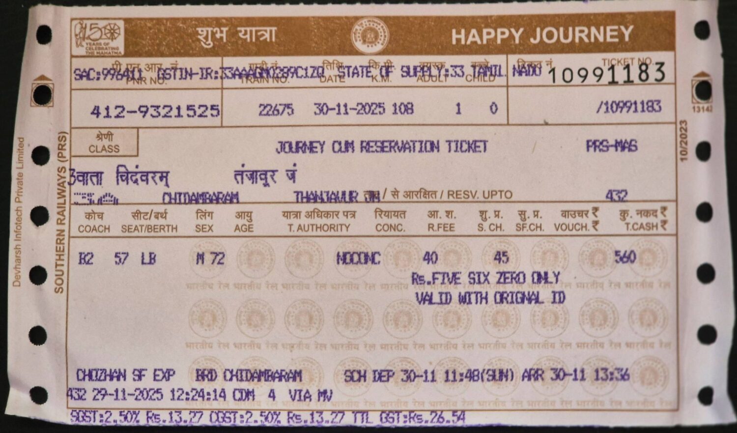 Was bin ich froh, als ich kurz vor 12h im Zug sitze. Das Ticket dafür habe ich mir am Samstag im Pladderregen schwer erarbeitet bzw. habe ich Glück gehabt, dass ich am Bahnhof dieses Ticket ergattern konnte. Weil das Zugfahren in Indien sehr attraktiv ist, sind die Tickets meist schon viele Tage vorher ausgebucht.