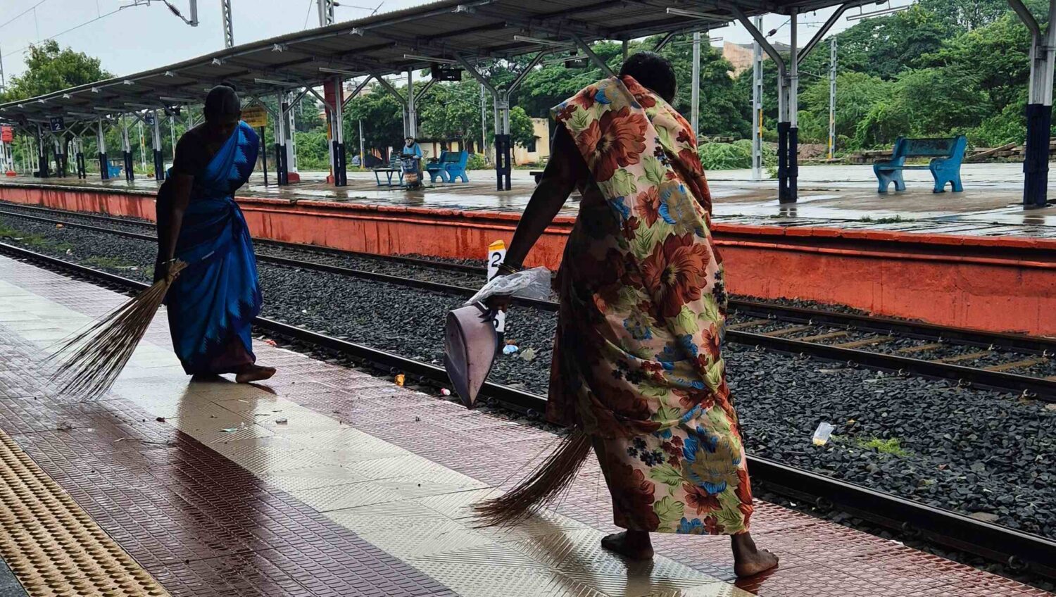 Sie haben zwar ein Kehrblech dabei, nichtsdestotrotz wird der Dreck einfach ins Gleisbett gefegt.