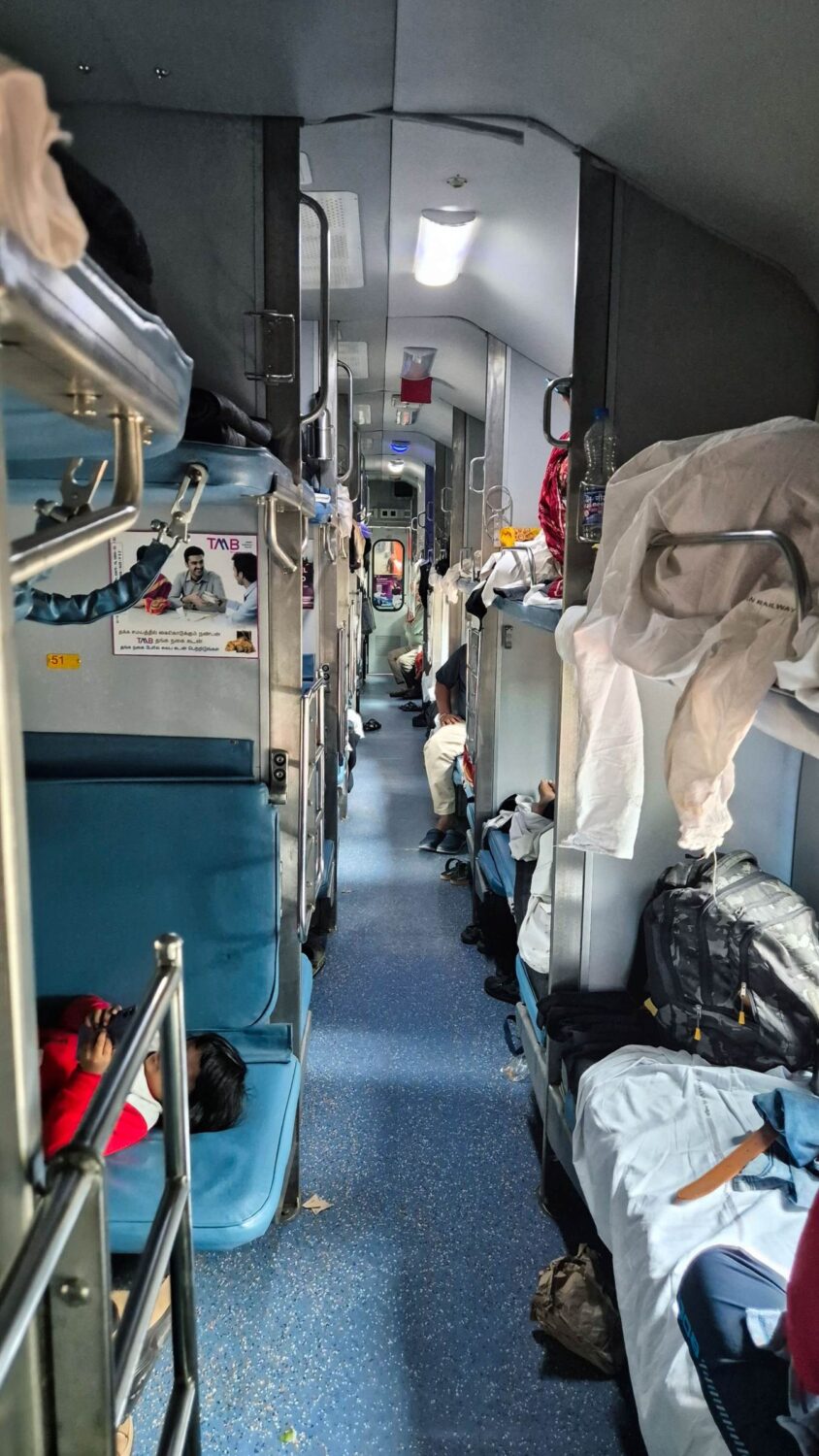 Die Züge sind in der Regel wahnsinnig lang und die Waggons in mehrere unterschiedliche Klassen eingeteilt. Es gibt allein vier unterschiedliche Klassen an Schlafwagen: „Schlafwagen unterscheiden sich in First Class, AC 2-Tier, AC 3-Tier und Sleeper Class. In der First-Class teilen sich zwei bis vier Passagiere ein Abteil, welches sich mit einer Tür verschliessen lässt. 2-Tier besteht aus offenen Abteilen, welche über je zwei obere und untere Betten verfügen. Die Abteile können mittels Vorhanges abgetrennt werden. 3-Tier folgt dem gleichen Prinzip, bloss dass hier die Betten dreistöckig sind, sprich sechs Personen pro Abteil liegen. Alle bisher genannten Klassen verfügen über Klimaanlagen. Dies ist für die Sleeper Class nicht der Fall. Letztere ist auf die indische Mittel- und Unterschicht ausgerichtet und verfügt über dreistöckige, offene Liegeflächen und bloss theoretisch reservierte Plätze…“