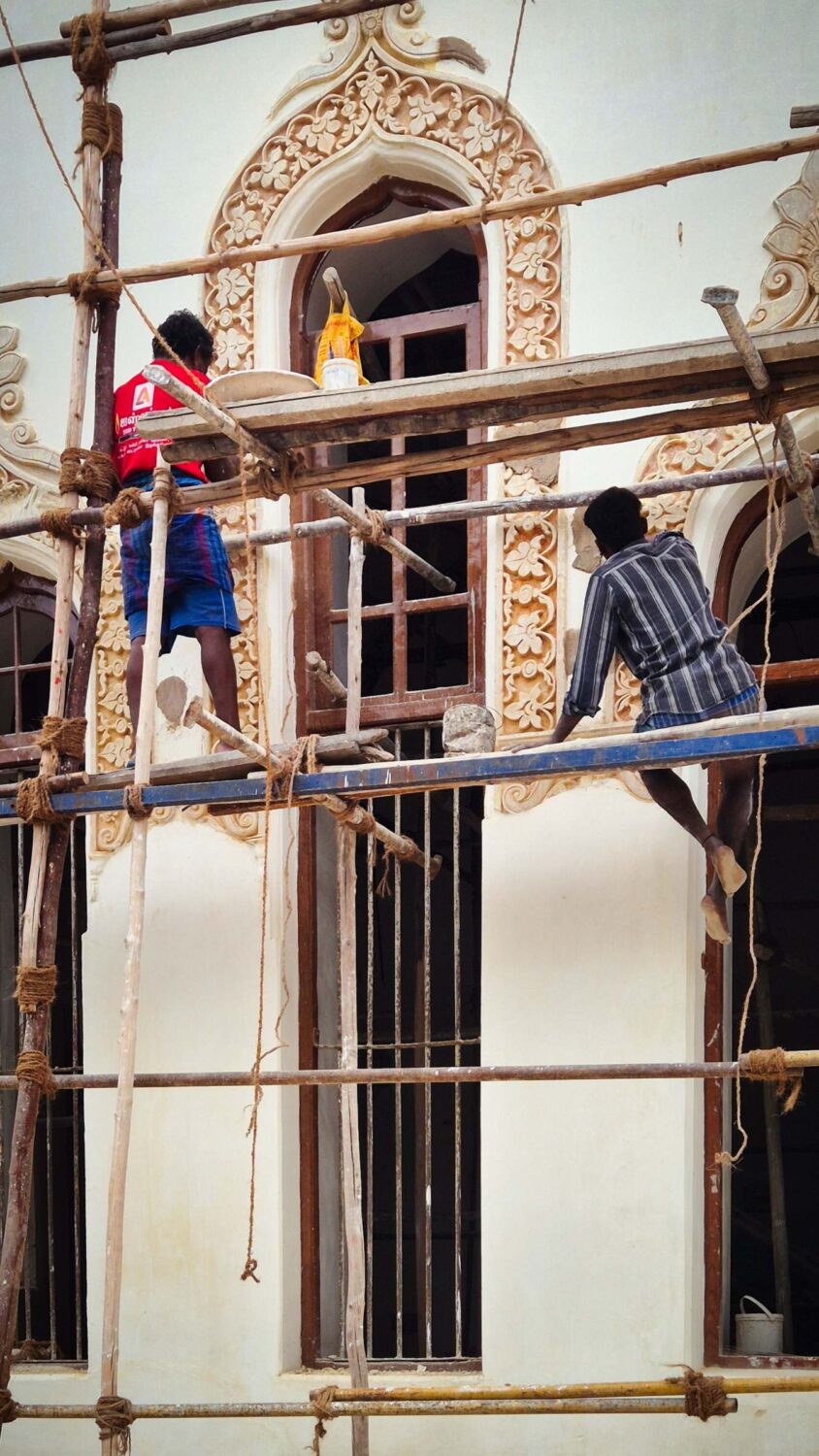 Der Königspalast aus dem 17. Jahrhundert (es steht nur noch der in Stand gesetzte Hauptteil) lockt mich an, weil er mitten in der Stadt ein Ort der Ruhe ist. Eine Gruppe junger Studentinnen befragt mich im Rahmen eines Uniprojekts (Genaueres hab ich nicht verstanden) ausführlich zu meinen Eindrücken vor Ort, meinen Reiseplänen und meinen bisherigen Erfahrungen beim Reisen in Indien (sehr konkret auch beim Reisen mit der Bahn). Und ob das, was ich anhabe, meine normale Kleidung in Deutschland sei? Ja, plus Socken und Jacke!