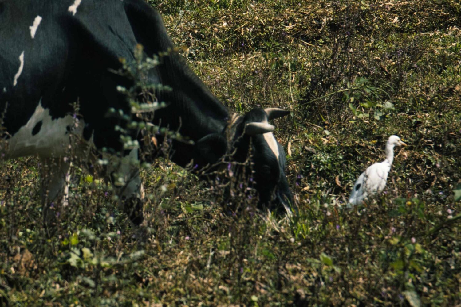 Der Koromandelkuhreiher lebt in Symbiose u.a. mit Kühen. Die beiden Tiere profitieren voneinander, indem die Kuh beim Grasen Insekten und Kleintiere aufscheucht, und damit dem Kuhreiher ganz nebenbei seine Mahlzeit serviert. Die Kuh findet gut, dass sie sich nicht von diesen kleinen Plagegeistern piesacken lassen muss.