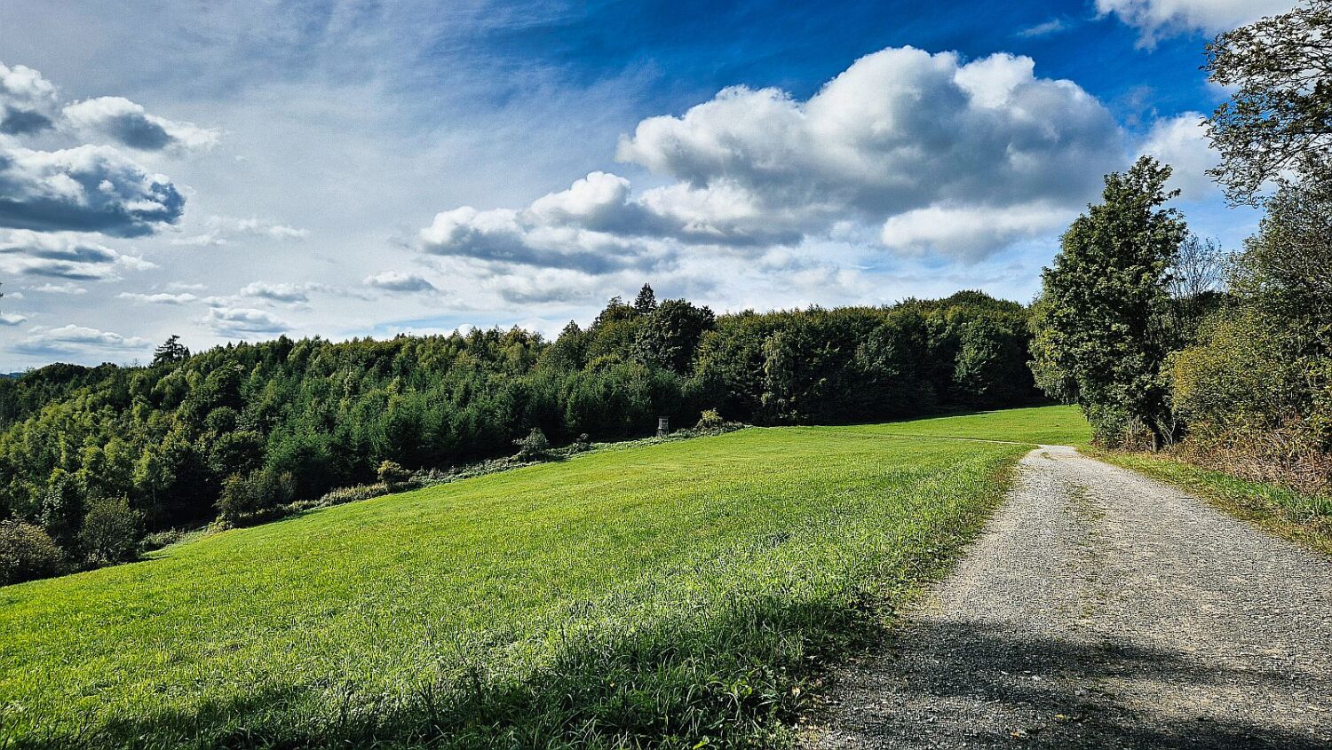 Obwohl die Sonne vom bis zum frühen Nachmittag wolkenlosen Himmel scheint, ist es doch recht frisch. Die zahlreichen Höhenmeter bergauf sorgen für eine ordentliche Betriebstemperatur. Die Wanderung mit vielen weiten Blickfedern ist wunderschön.