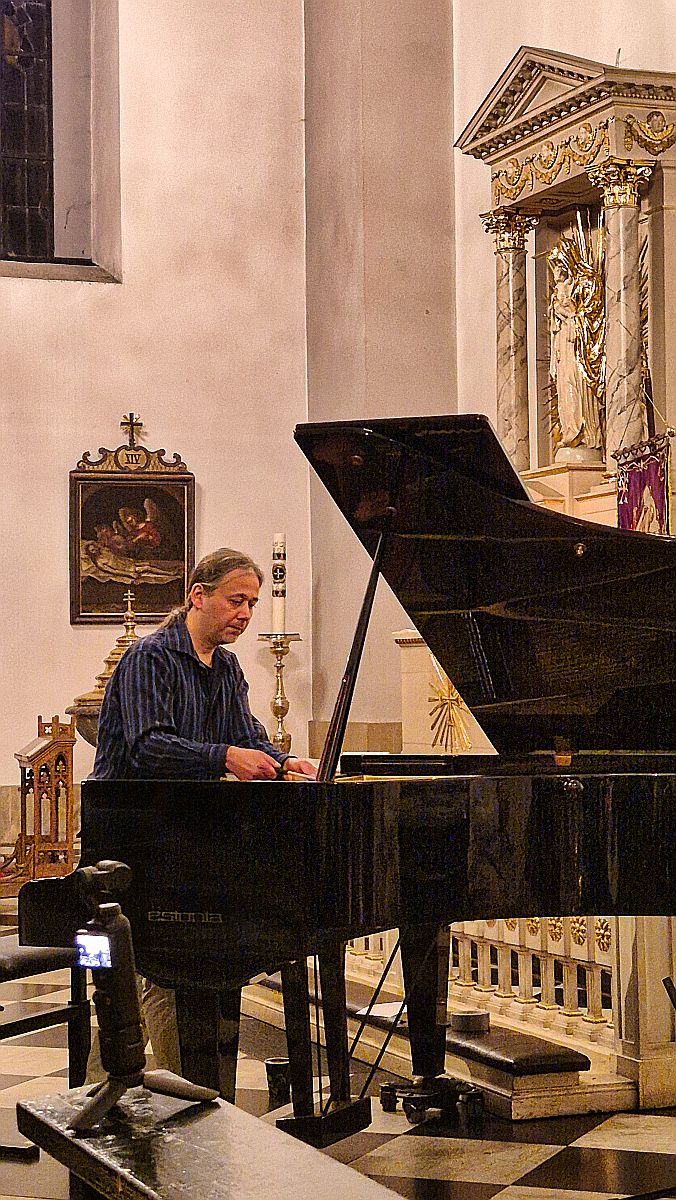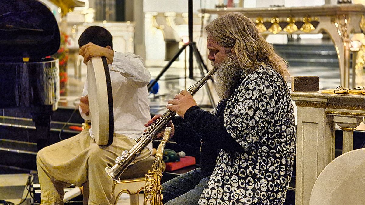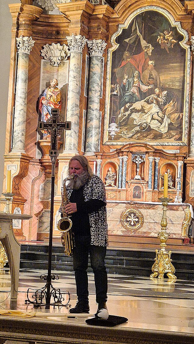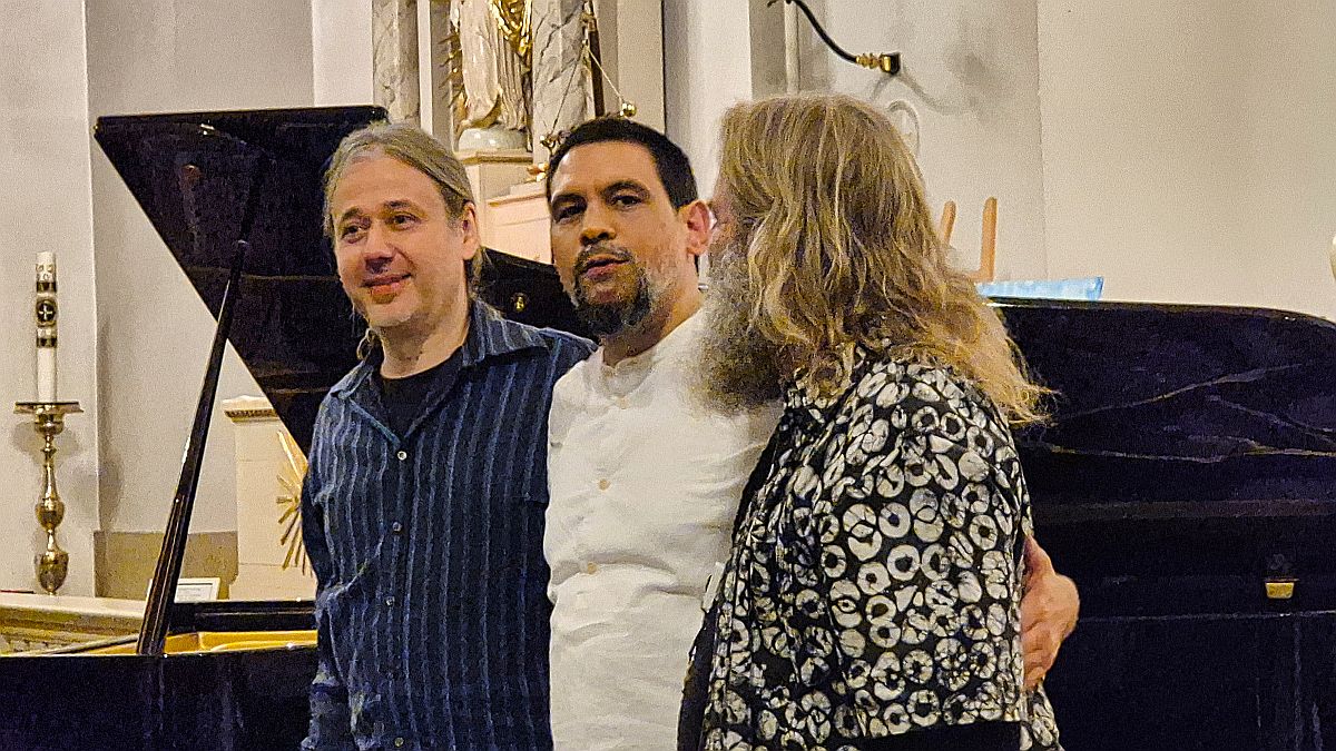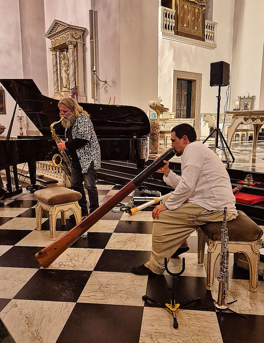 Ein traumhaftes Erlebnis in der Basilika St. Laurentius in Elberfeld! Zu einem höchst außergewöhnlichen (Klang)Erlebnis nutzen der Wuppertaler Marvin Dillmann (didgeridoo, percussion), der Schweriner Warnfried Altmann (Tenor- und Sopransaxophon, Stimme) und der Wuppertaler Pianist, Komponist und Sound-Designer Daniel Bark (Flügel) die Laurentiuskirche – wie sie im Volksmund heißt. Der Ort hätte nicht besser gewählt sein können, denn die Blasinstrumente nutzen durch Positions- und (Schall)Richtungswechsel die gigantischen Dimensionen des Hauses voll aus. Darüber hinaus betonen Dillmann und Altmann in ihren Moderationen, dass sie mit ihrem Konzert nicht nur ein Hörerlebnis schaffen wollen, sondern darüber hinaus ein progressives Begegnungserlebnis für ein kreatives und friedliches Miteinander. Das begeisterte Publikum in der bis auf den letzten Platz gefüllten Basilika stimmt zu und dankt mit standig ovations.