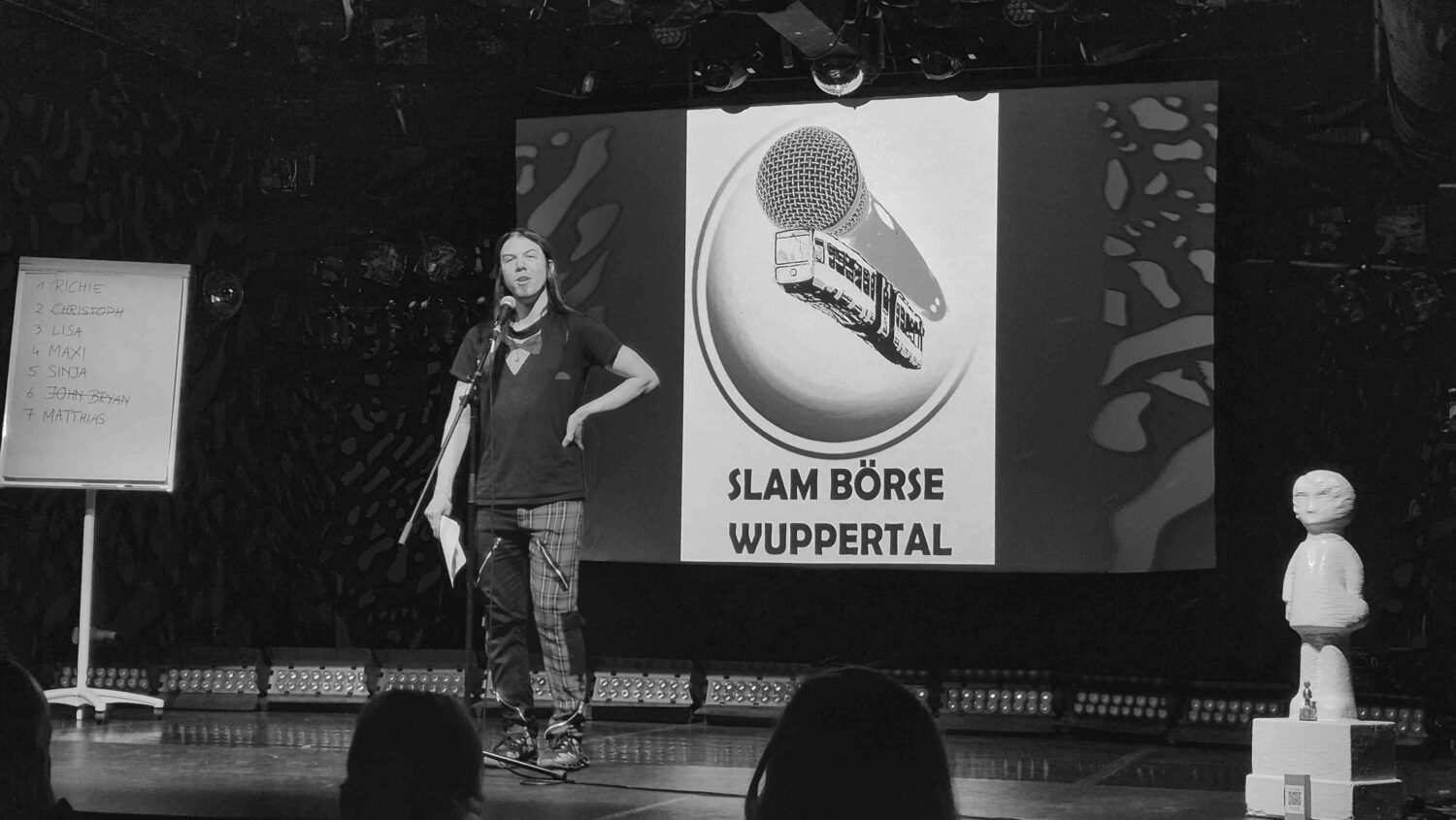 Die erste Slambörse in der neuen Saison vor vier Wochen habe ich gar nicht protokolliert, weil sie kaum der Rede wert war. Die zweite – heute – dagegen bietet einige tolle Texte. Insgesamt sieben KünstlerInnen kämpfen in zwei Vorrunden und dem Finale um die Auszeichnung, den jungen Engels.