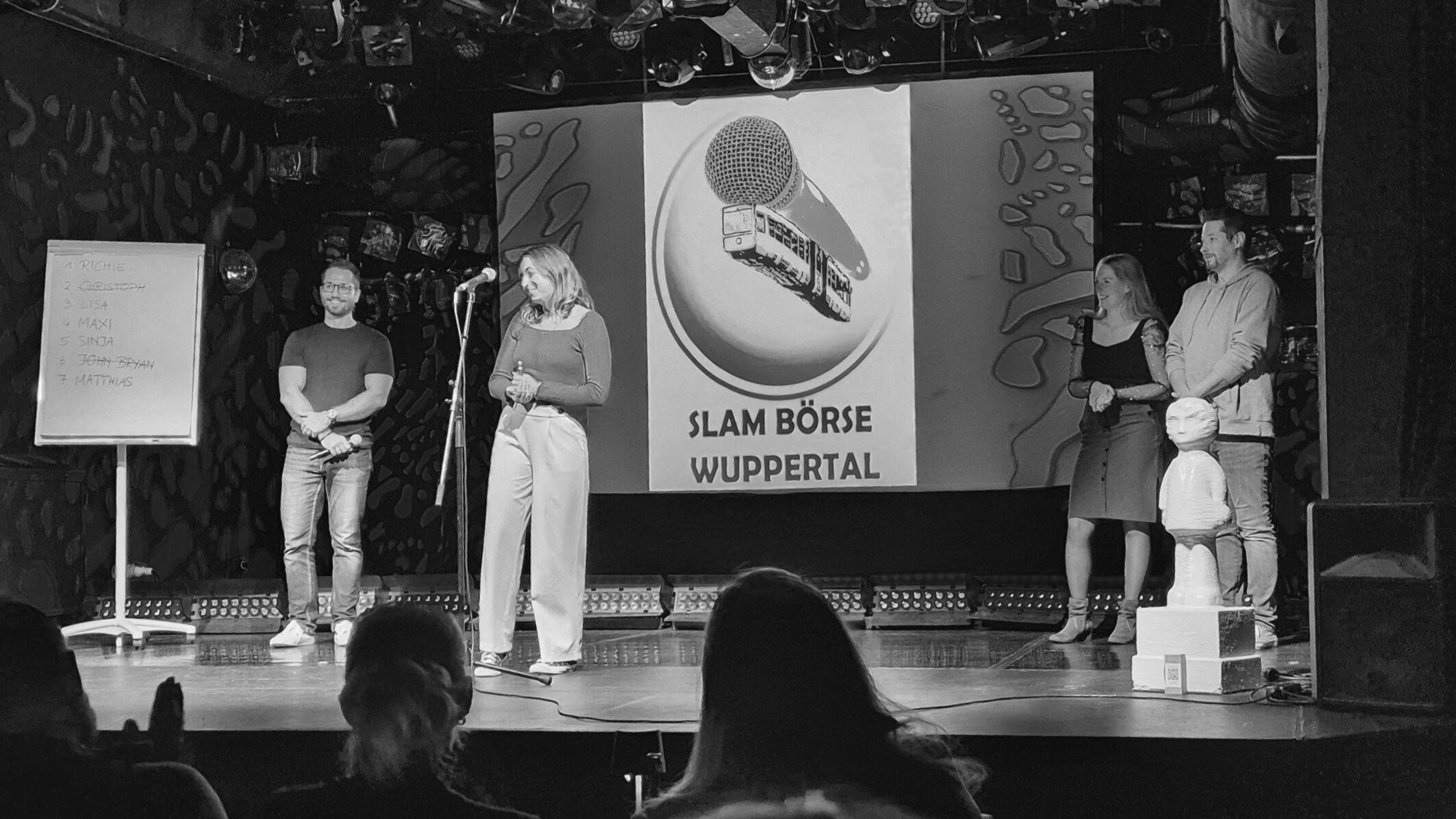 Die erste Slambörse in der neuen Saison vor vier Wochen habe ich gar nicht protokolliert, weil sie kaum der Rede wert war. Die zweite – heute – dagegen bietet einige tolle Texte. Insgesamt sieben KünstlerInnen kämpfen in zwei Vorrunden und dem Finale um die Auszeichnung, den jungen Engels.